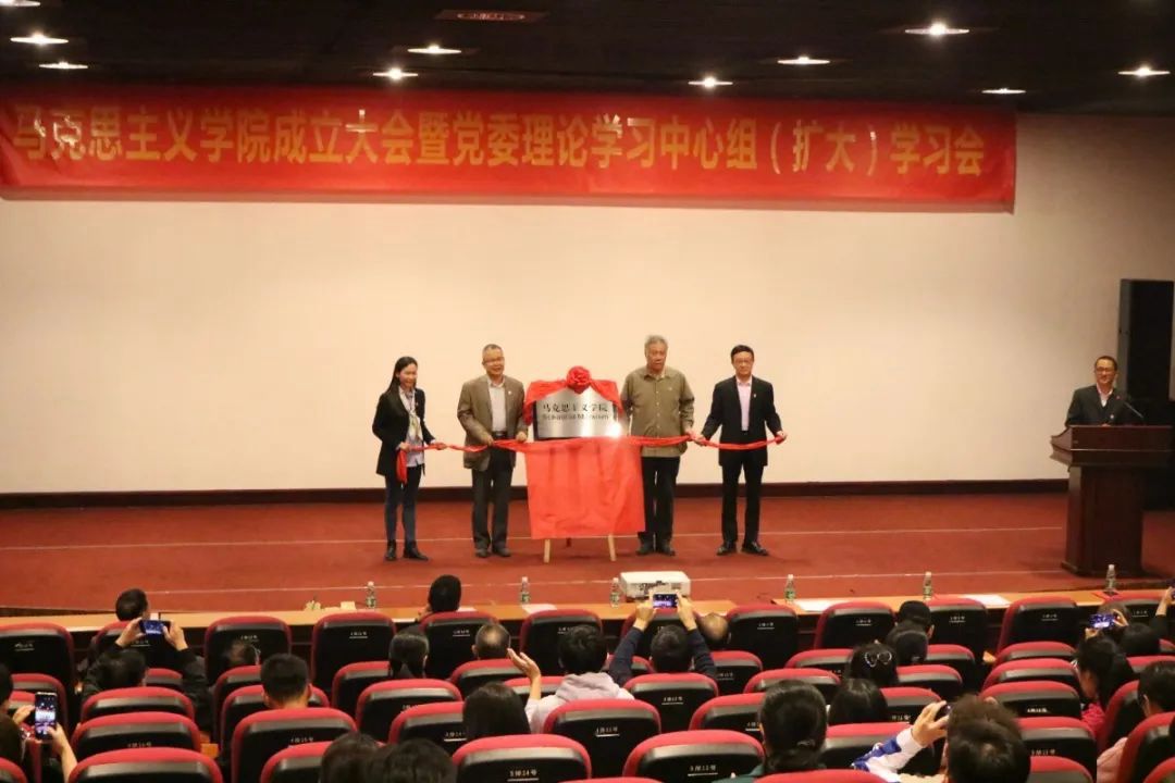 12月1日下午,我校马克思主义学院成立大会暨党委理论学习中心组(扩大)学习会在行政楼三楼多功能厅召开。党委书记王永云、校长庞永师等校党政领导出席会议,广州松田职业学院思政部主任周巨安应邀出席会议,全体中层干部、基层党组织书记、副书记、马克思主义学院全体教师以及学生代表参加会议。会议由党委副书记裴九雄主持。