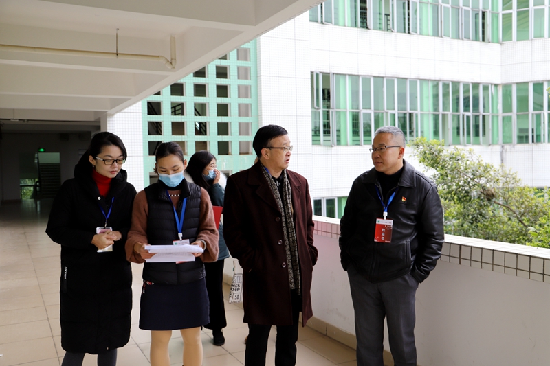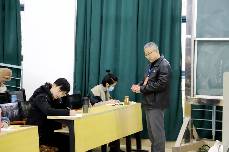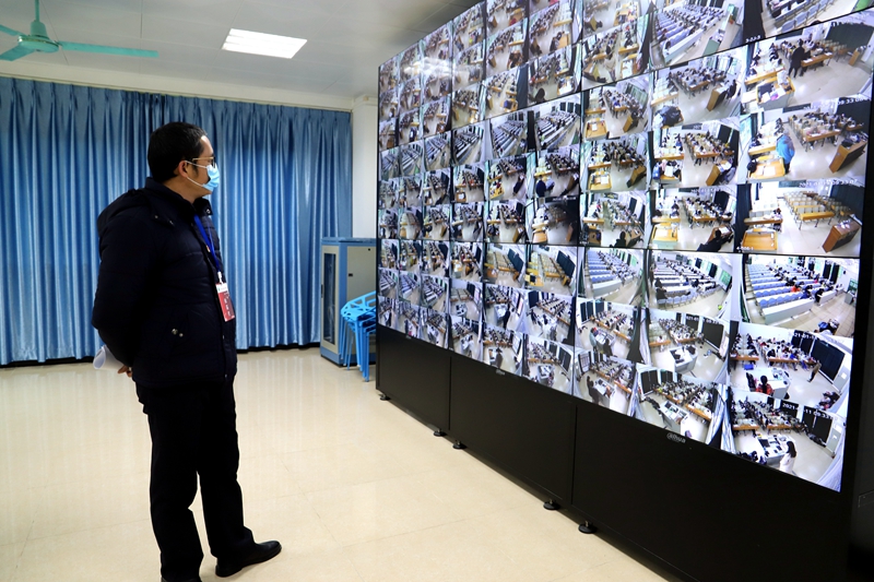 1月11日上午,党委书记王永云、副校长李江凌、党委副书记裴九雄分别到各个考场检查指导期末考试工作,并通过全校视频监控平台进行在线巡考。学校领导对当日相关场次各考场进行了逐一巡视,详细询问了有关工作安排和落实情况,进一步明确考试工作职责,细化工作分工、流程和相关工作的领导责任和工作责任。