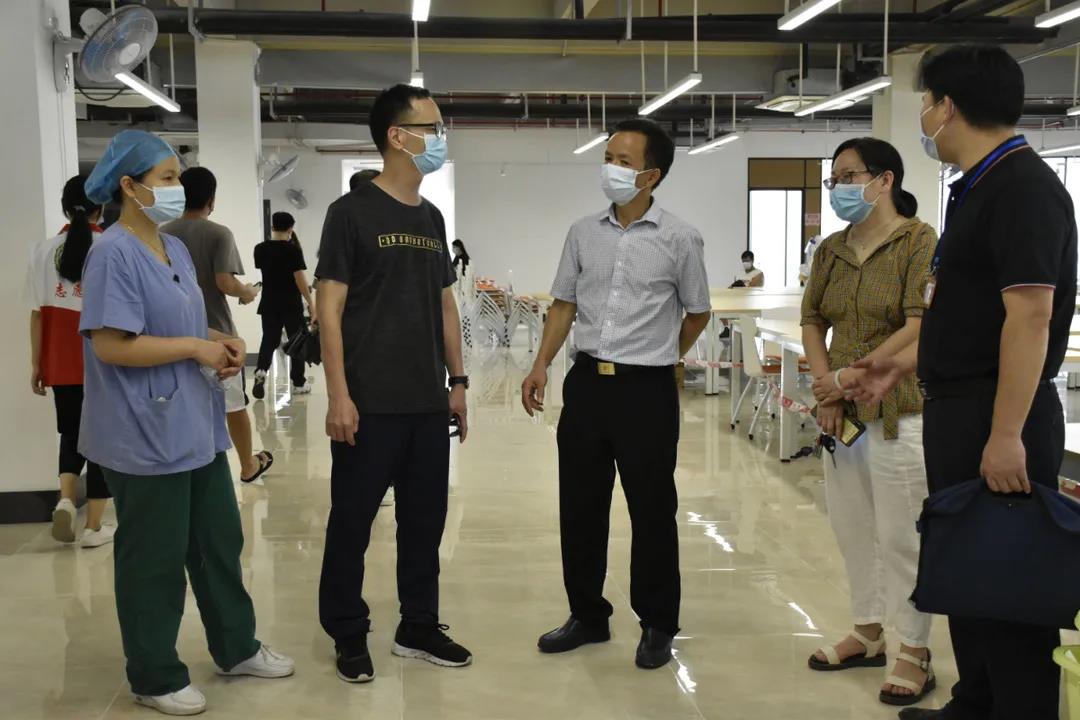 6月21日上午,我校董事长刘剑锋、校长庞永师、党委书记王永云等领导,来到学校新图书馆核酸检测点检查工作开展情况,看望慰问医护人员和志愿者,实地督战校园核酸检测工作顺利进行。刘剑锋董事长和校领导们在志愿者们的指引下,与师生们一同排队、测温,进行咽拭子采样,完成检测全流程。