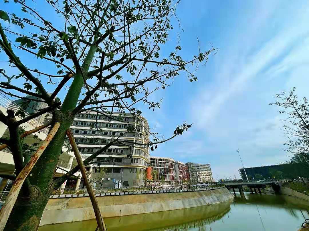 学校肇庆校区分为南北两岸,在丰乐渠的北岸,以图书馆、体育馆、足球场、学生公寓、教师公寓和商业中心为主,南岸则以教学楼、实验楼、行政楼为主要建筑。目前,该校肇庆校区不仅围绕丰乐渠修建了风景优美的亲水平台和步行栈道,同时建设了两座跨河桥,以及一座风雨连廊融合师生在南岸和北岸的生活学习。值得一提的是,该校已经建成的风雨连廊共有3层,连接丰乐渠两岸的教学大楼和学生公寓、饭堂和商业中心,学生不仅可以在桥上打卡休闲,而且在任何天气下都无需打伞,便可通行于教室与宿舍之间,幸福指数满满。