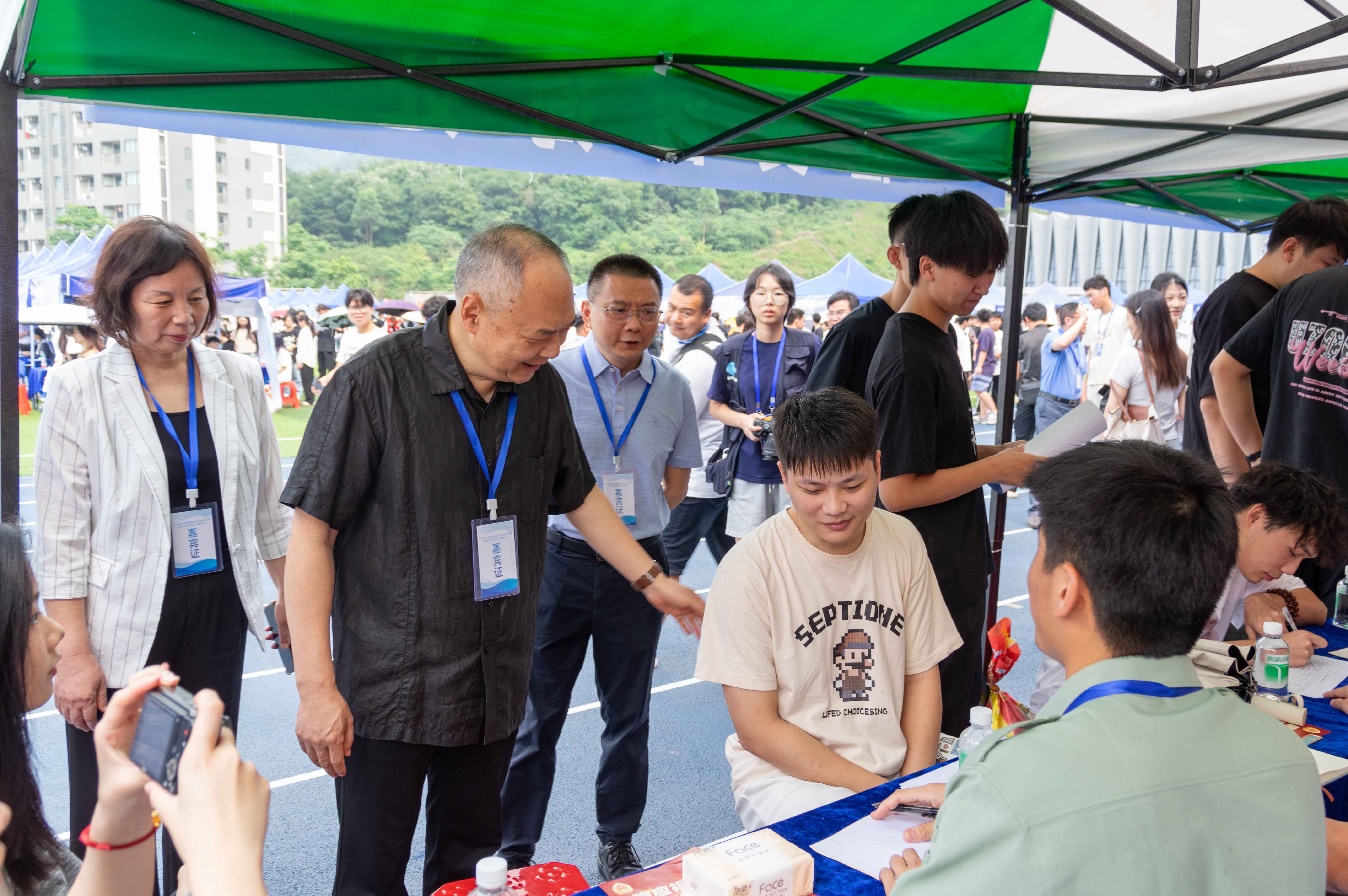 学校执行校长张光宇、党委书记王永云、常务副校长吴舸、副校长刘志新等党政校领导深入招聘会现场调研指导工作。就业指导中心、党委宣传部、学生处、团委、国际合作与交流处相关负责人,各二级学院院长、书记陪同调研指导。