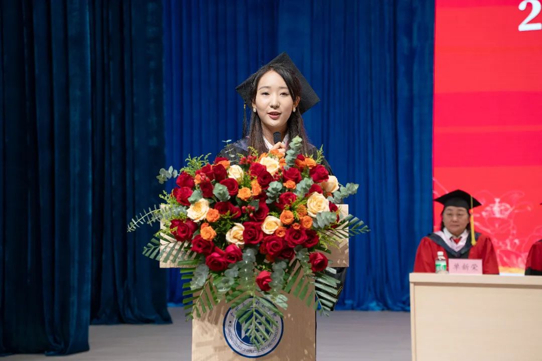 ▲体育科技学院2020级社会体育指导与管理(7)班刘莹同学作为毕业生代表发言