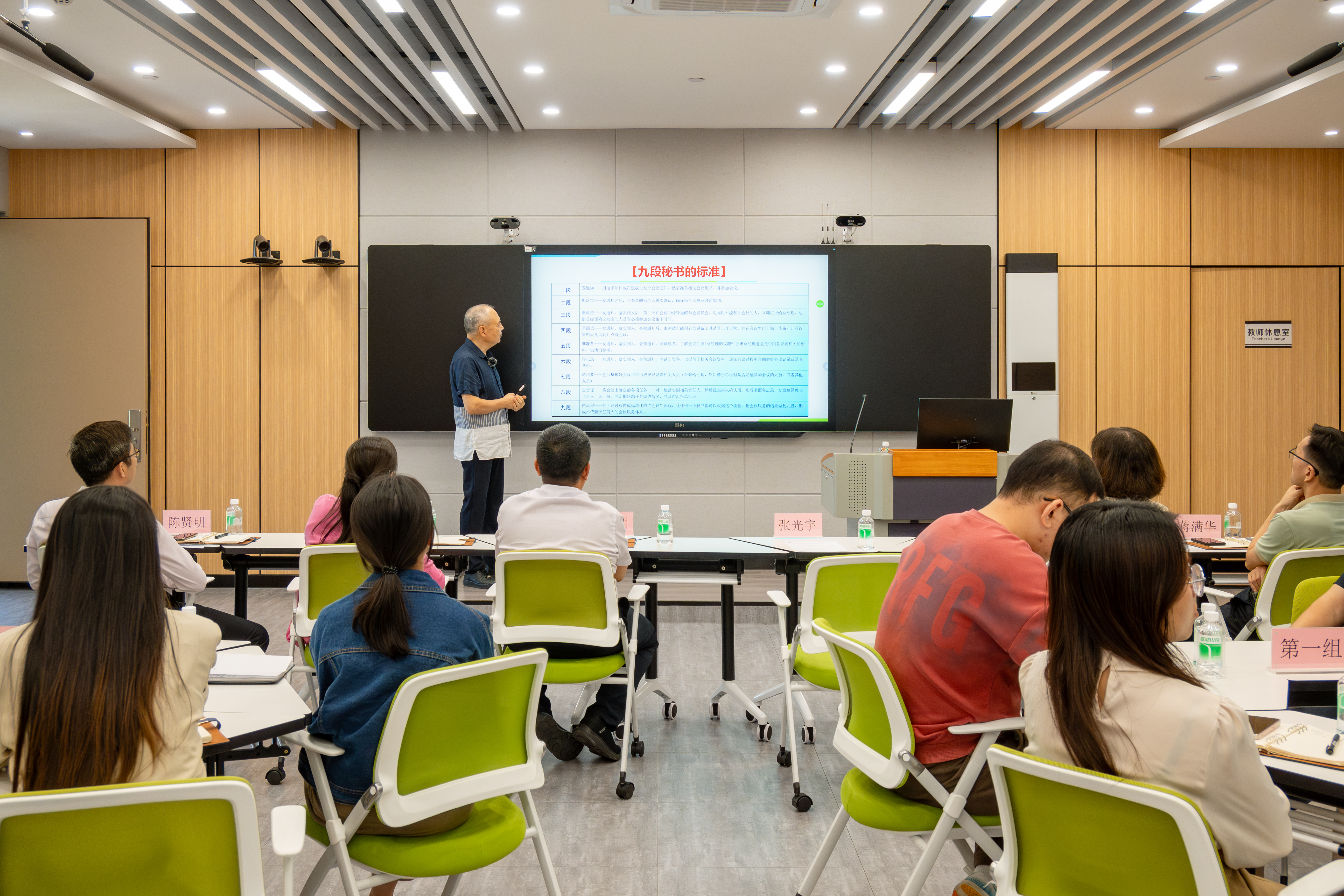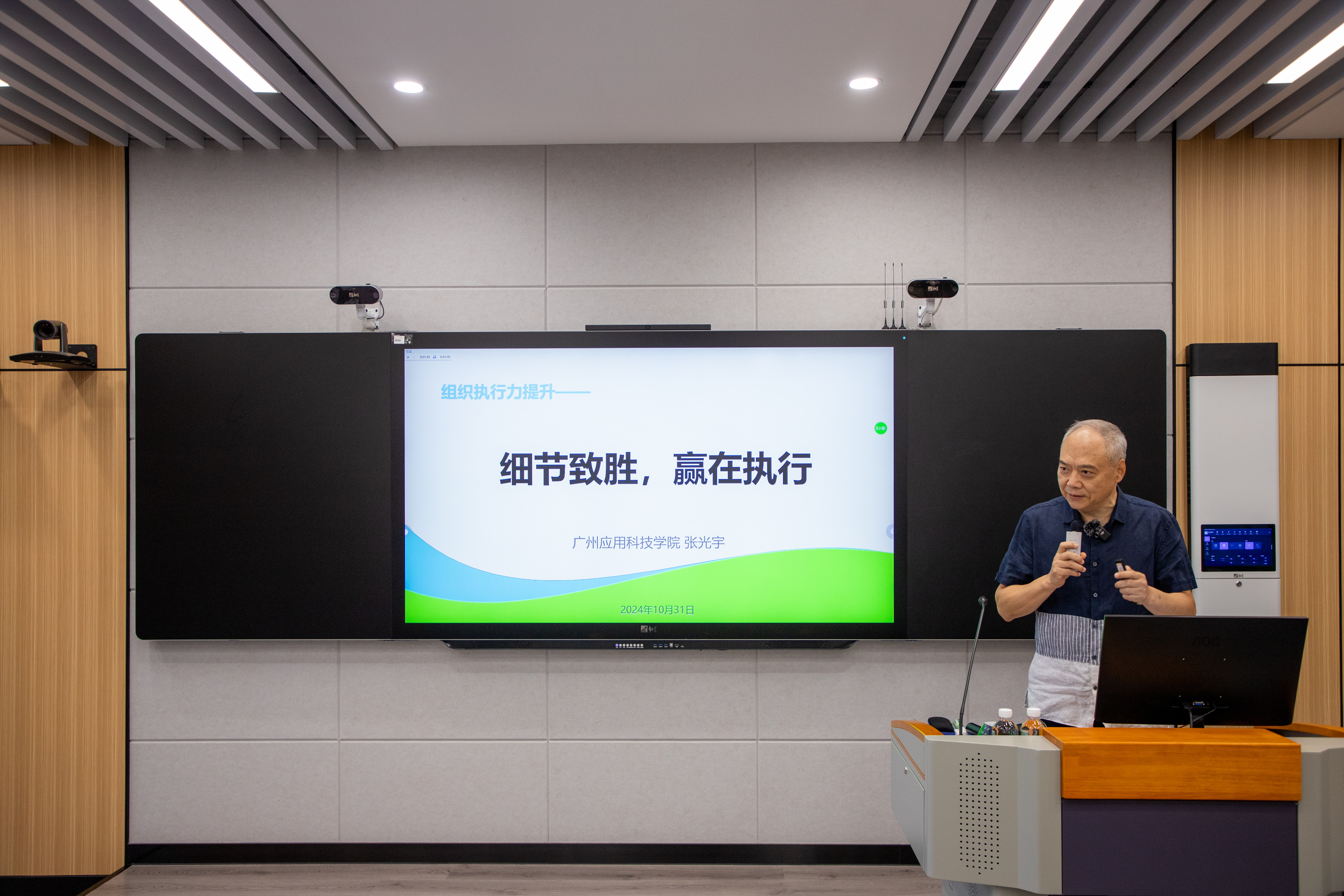 执行校长张光宇在青年干部成长营第一营首讲做专题授课。张光宇执行校长以《细节致胜,赢在执行——组织执行力提升》为题,以“追本索源:背景与价值”“自我画像:问题与原因”“探赜索隐:概念与内涵”“独辟蹊径:方法与路径”“竿头日上:进阶与测量”等5个方面,从背景与价值、问题与原因、概念与内涵、方法与路径、进阶与测量五个纬度进行梳理讲解,授课内容丰富、深入浅出、旁征博引,既有深刻的理论分析,也有大量的现实案例剖析。“执行力之问”、“你能做到结果的哪一步”等具体问题生动阐释了执行力的重要性和必要性。其中,张光宇执行校长结合自身经历运用大量详实的图片举例说明,“抓落实就是执行力”、“准时、按标准、合理完成任务就是执行力”等金句频出,紧扣实际工作,引起参训人员强烈共鸣。他强调,为推动广应科办学高质量发展,学校青年干部组织执行力的提高尤为重要。青年干部培训营将着重培养各干部的组织执行力,在培训中落实好干部标准,把制度执行力和治理能力作为干部选拔、运用、考核评价的重要依据。学校和青年干部要成为共同体,把学校的发展与国家的发展联系在一起。张光宇执行校长希望全体青年干部通过提升执行能力与责任感,扛起属于教育工作者的时代责任,把教育者的价值体现在对学生的培养中,争做为党育人、为国育才的新时代好干部。
