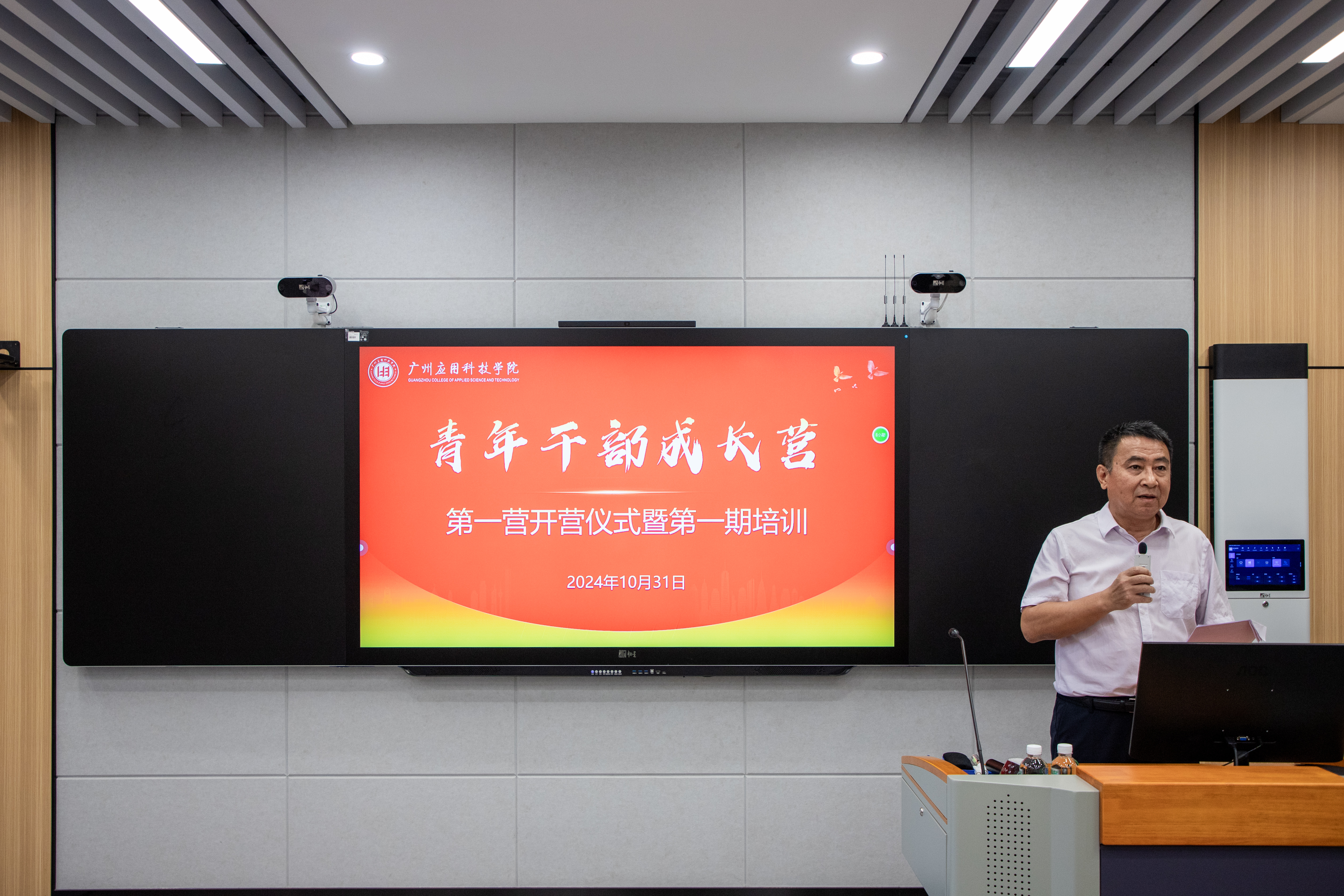 在全党全国上下深入学习贯彻党的二十届三中全会精神,我校深入实施“三步走”战略,全力迎接教育教学合格评估,努力建设高水平应用型大学之际,10月31日上午,广州应用技术学院青年干部成长第一营开营仪式在图书馆905智慧教室举行。执行校长张光宇、党委书记陈光团、党委副书记刘志新、校长助理李根珍等党政校领导出席开营仪式,综合办公室、党委组织部负责人,全校正、副科级干部参加开营仪式。刘志新副书记主持开营仪式。