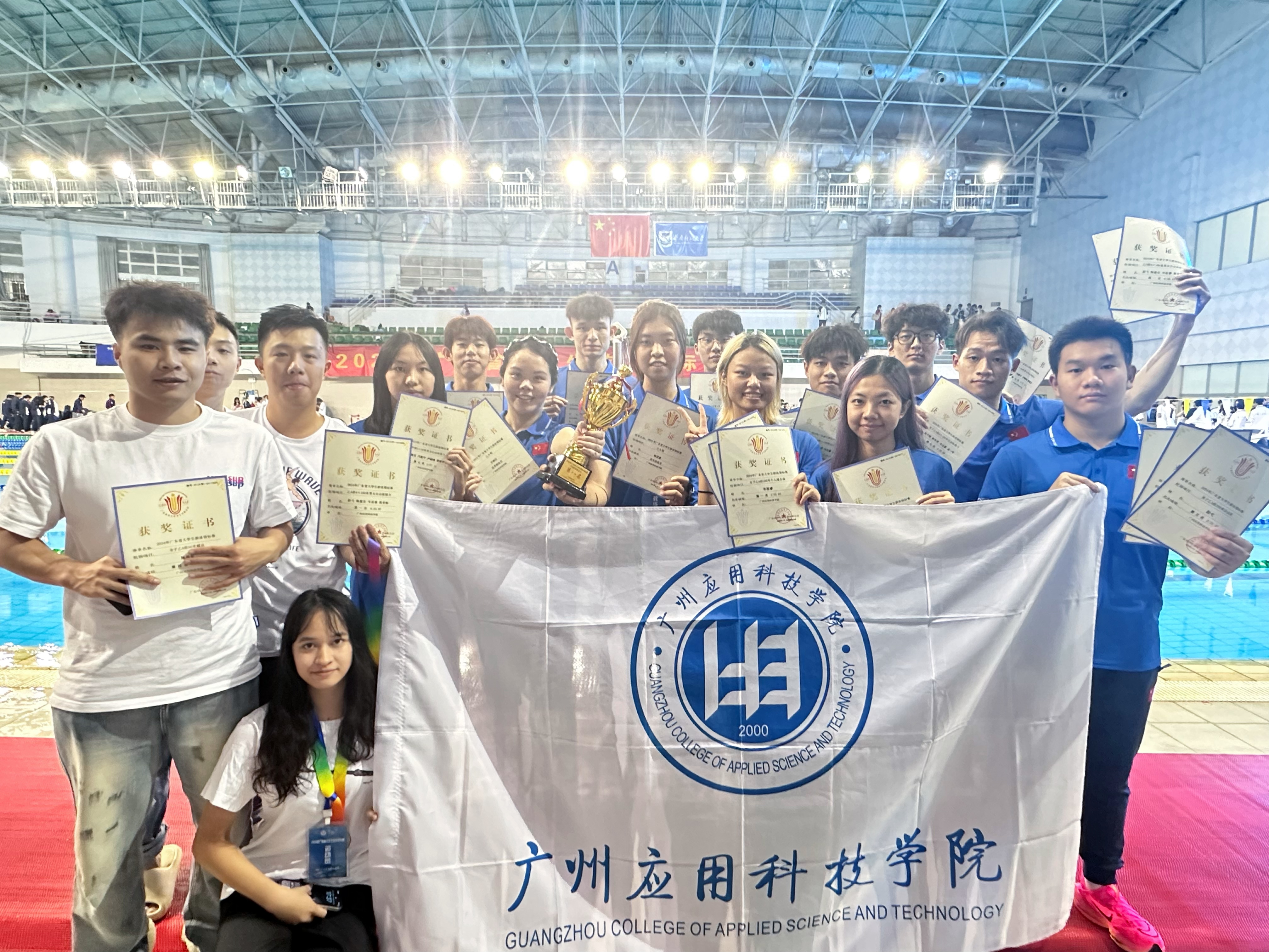 广州应用科技学院积极响应国家“体育强国”、广东省“体育强省”的决策部署,立足粤港澳大湾区体育与经济社会发展实践,提出“体育强校”优先发展战略,致力提高应用型人才培养质量,全力建设特色鲜明的高水平应用型大学。在两场赛事中,我校游泳队团结拼搏,以高超的泳技、坚韧的意志和出色的比赛策略,在赛场上屡创佳绩,展现出我校游泳队的强大实力;我校体育舞蹈队以优异的表现和高超的技艺,从众多参赛队伍中脱颖而出。