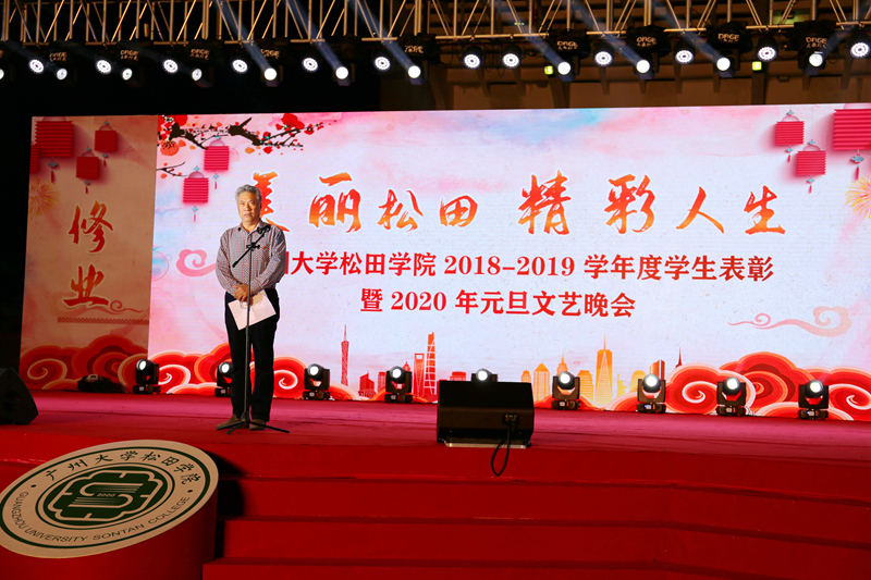 松田网讯(记者:李帆 黄佩珊)12月18日晚,我校2018-2019学年度学生总结表彰暨2020元旦文艺晚会在田径运动场举行。校长庞永师,党委书记王永云,以及党政领导班子成员参加了晚会,分别为受表彰的优秀学生和先进集体颁奖,和全校师生欢聚一堂,喜迎新年元旦。